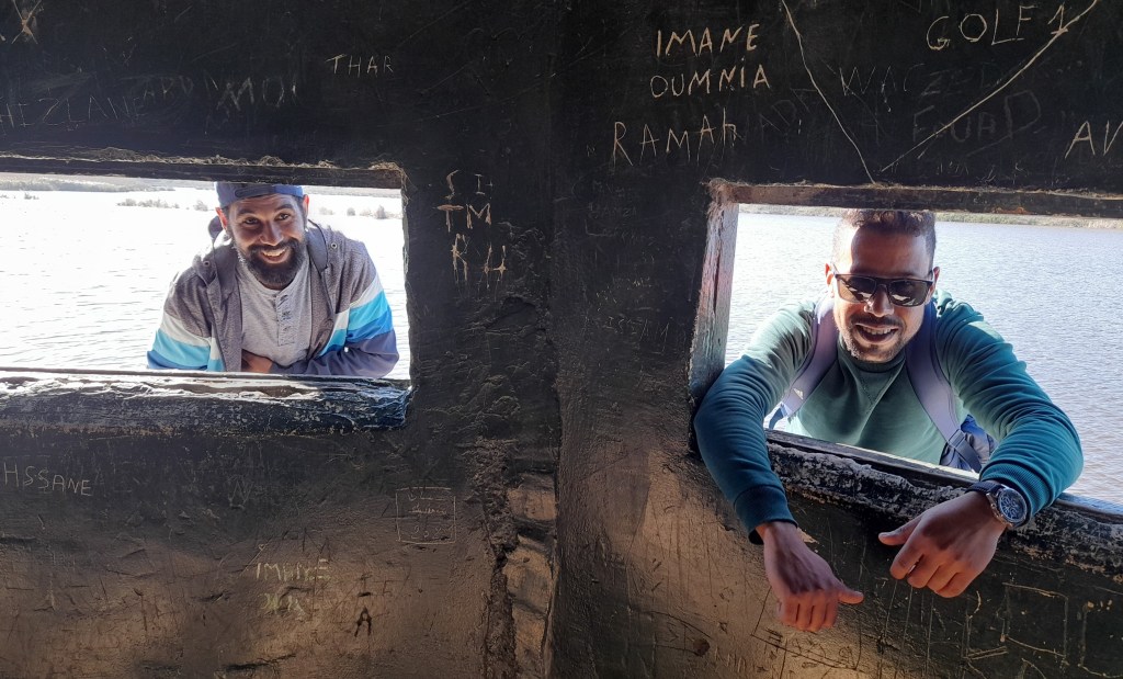 Nos bajamos en la gasolinera junto al desvío del lago. Entro a comprar agua y no puedo evitar recordar a Francesca y a Jean-Pierre, que pararon aquí mismo mientras peregrinaban por el Gharb. Al salir, me encuentro a Said y a Muhsin hablando y riendo como si se conocieran de toda la vida. Nos ponemos en camino y nuestras sombras, que se proyectan sobre el asfalto, me hacen darme cuenta de que por fin estamos de excursión los tres juntos. ¡Hemos roto la maldición!