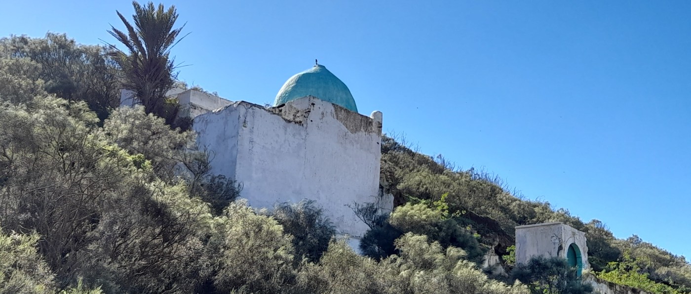Caminamos por el asfalto bajo el sol abrasador y, al ver el morabito de Sidi Bughaba, tomo el sendero que lleva hasta la entrada sin consultarles. Me atraen estos lugares cuyo origen todavía no he comprendido. Soy el primero en deambular por las ruinas para hacer fotos del interior. Let’s them rest in peace. Said habla en inglés cuando me dice algo importante.