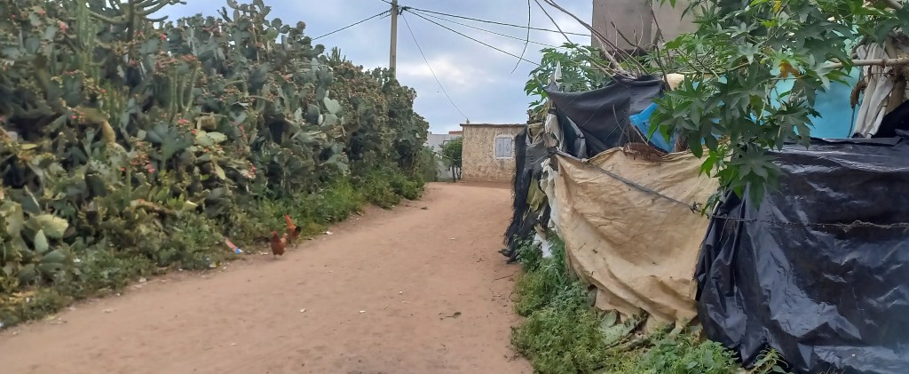 Caminamos bajo las estrellas por una callejuela arenosa del aduar. Llegamos a la casa de Nordin y cruzamos un pasillo hasta un salón sin divanes. El cuarto está recubierto de esteras y alfombras como para evitar hacerte daño si acaso tropezaras y cayeras al suelo. Me acomodan en un rincón y sirven té y pastas. Nordin se ausenta un momento antes de desvelar por fin el misterio.