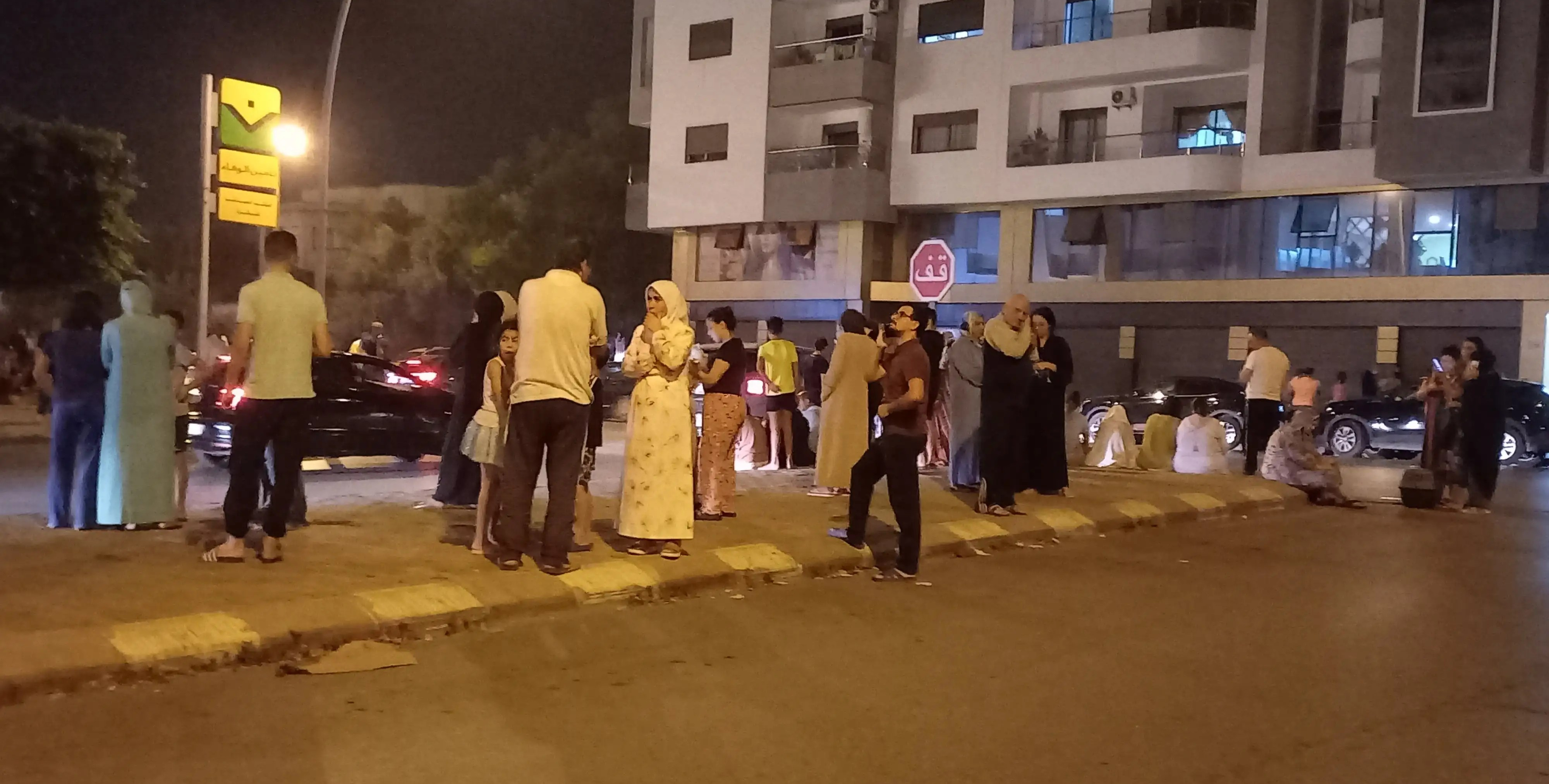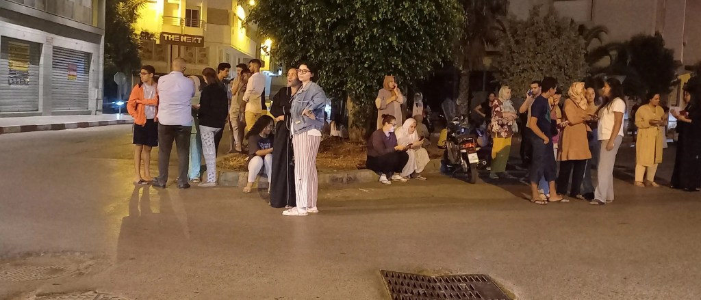 Pasadas las once de la noche, acabo de llegar a casa con el móvil casi descargado, me siento en la cama para cargarlo y espero un poco mientras contesto mensajes. Se empieza mover la cama, me pregunto si me estoy mareando y me voy a desmayar, parece que están meciendo la cama, ¿serán los vecinos haciendo el amor?, es como si alguien la moviera adelante y atrás, pero estoy solo en la habitación. Se oye un avión, ¿será eso? La lámpara está bailando y va cambiando la luz del cuarto. ¡Terremoto! Escucho el jaleo de los vecinos en el patio que se cuela por la ventana abierta. Me pongo debajo del dintel de la puerta de mi habitación. Oigo que los vecinos están saliendo a la calle y decido hacer lo mismo. Cojo el móvil casi descargado, una botella de agua y un plátano. Los vecinos están asustados, bastante más que yo, salen de casa dejando las puertas abiertas, ¡Fátima, ciérrala y baja a la abuela!, en la escalera hay unos limones caídos. Nadie coge el ascensor, llego a la calle que ya está llena de gente que ha salido tal cual estaba: en pijama o ropa de estar en casa, mi vecino del quinto está descalzo. El personal se aglutina en espacios alejados de los edificios: jardines y rotondas repletos de gente sentada. Algunas sillas para las personas mayores que han salido con ayuda de los jóvenes de la familia. A los pocos minutos todo el mundo está hablando por teléfono confirmando cómo están los familiares. La conexión es mala por exceso de uso. Todo el mundo es de repente experto en sismología. Paseo por las calles, parece una noche de feria con todo el mundo en la calle. Hay situaciones impropias, casi surrealistas, una mujer dando el pecho sentada en un bordillo en pijama. Me llama Morad para saber si estoy bien y me pregunto si no será más grave de lo que me parece ahora mismo. Pasada media hora muchos vecinos deciden montar en el coche para irse a pasar la noche en alguna vivienda familiar más segura. En mi calle, con edificios de seis alturas se ha notado mucho el movimiento. Me acuesto preguntándome si soy el único que va a dormir aquí. Estoy agotado y decido acostarme.