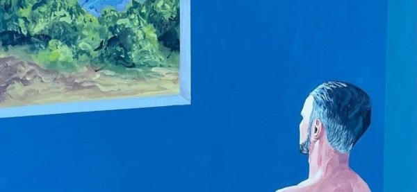 "...por eso su sombra se alarga artificiosamente, porque se está transformando y está dejando atrás el hombre que era justo antes de sentarse para contemplar la pintura solitaria que cuelga en el muro azulado de la habitación..."